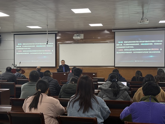 为进一步推动创新创业教育贯穿教育活动全过程,促进专业教育与创新创业教育的深度融合,3月5日下午,经济管理学院在乐业楼314会议室启动创新创业教育沙龙。第一期沙龙主题为“中国国际大学生创新大赛赛事解读”,由南京邮电大学国家级创新创业学院副院长张徐教授担任主讲,经济管理学院教师和参赛同学参加。
