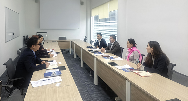 代表团还访问了国立欧亚大学、哈萨克斯坦技术和商贸大学、图兰—阿斯塔纳大学,与相关负责人进行了会谈。此外,代表团还与阿斯塔纳创业孵化中心、华为技术哈萨克斯坦有限公司等就校企合作、学生就业、中心建设等主题进行了交流。