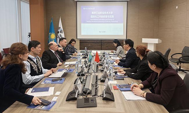 在纳扎尔巴耶夫大学,研究生院首席行政官叶尔肯·图尔甘巴耶夫(Yerken Turganbayev)、国际化处处长阿丽娅·凯莫尔迪诺娃(Aliya Kaimoldinova)、国际化处总经理阿伦·库斯潘诺夫(Alen Kuspanov)、国际化处经理艾格丽姆·扎齐特(Aigerim Zhazit)出席了会议。会上,叶尔肯·图尔甘巴耶夫希望双方围绕科研合作、教师与学生互访项目以及各类培训项目,展开深度探讨,共同探索中哈教育合作新路径,推动两国教育交流与合作迈向新高度,为“丝绸之路经济带”建设注入强劲教育动力。威尼斯官网代表团介绍了江苏经济的整体情况、威尼斯官网基本情况、国际化工作现状以及“中文+职业技能”教育合作方案。