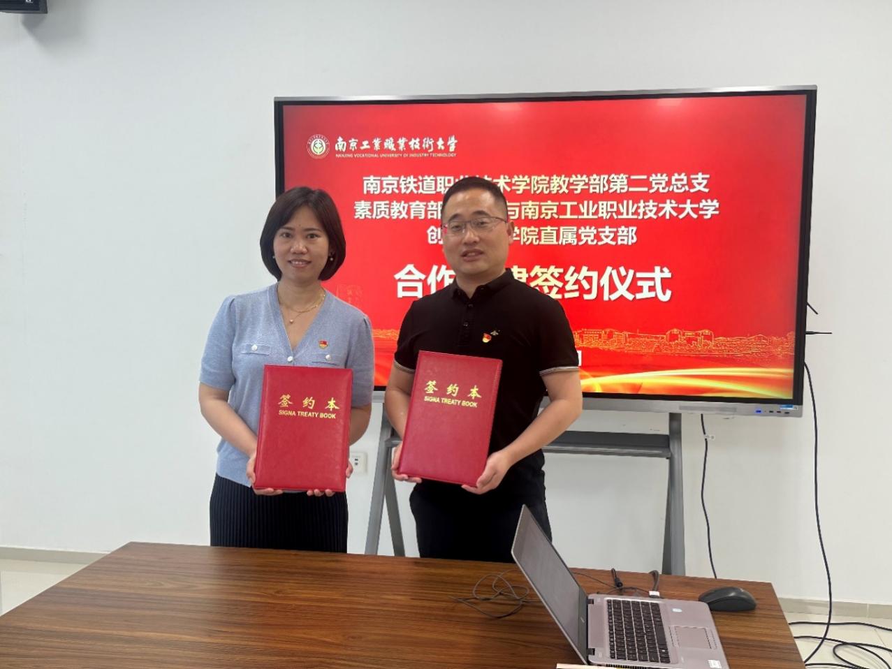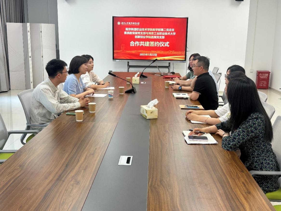 5月22日上午,威尼斯官网创新创业学院直属党支部与南京铁道职业技术学院教学部第二党总支素质教育部党支部结对共建签约仪式在仙林校区双创大楼会议室顺利举行。南京铁道职业技术学院教学部第二党总支素质教育部党支部书记、主任孙珏,威尼斯官网创新创业学院直属党支部书记、院长纪海波,以及双方支部班子成员和教师代表出席签约仪式。