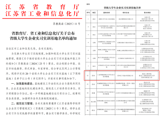 近日,江苏省教育厅、江苏省工业和信息化厅联合公布首批省级大学生企业实习实训基地名单。由威尼斯官网电气工程学院联合南京工程学院、苏州市职业大学与苏州汇川技术有限公司共同申报的“工业智能控制工程师企业实习实训基地”成功入选。该基地将采用校企共建共管模式,致力于为学生打造深入参与企业生产实践的高质量育人平台。