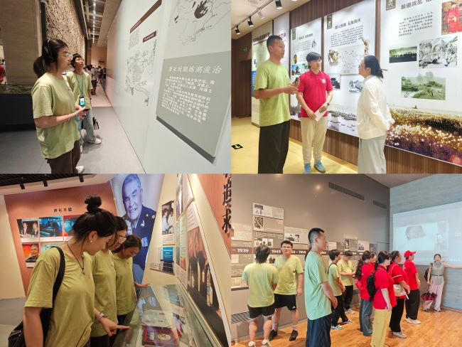 7月2日,实践团首站抵达高邮,实地考察高邮明清运河故道,深入了解“一湖两河三堤”的独特格局。在平津堰遗址调研中,他们透过古代堤防工程的智慧结晶,感悟多民族协作守护母亲河的历史传承。成员们沿着运河故道漫步,触摸着承载千年文明的河堤,仿佛看到了历代各民族人民共同治理运河、守护家园的壮观场景。下午,实践团先后参观抗日战争最后一役纪念馆、省级青年学习社汪曾祺纪念馆及中国大运河遗产点盂城驿。