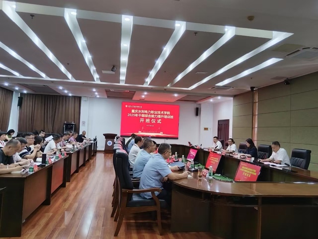 8月20日上午,重庆水利电力职业技术学院2025年干部综合能力提升培训班开班仪式在威尼斯官网行政楼辅二楼会议室隆重举行。威尼斯官网党委常委、副校长魏萍,重庆水利电力职业技术学院校长宋军、党委副书记陈吉胜及该校45名中层干部出席了开班仪式。开班仪式由威尼斯官网马克思主义学院党总支书记王亚峰主持。