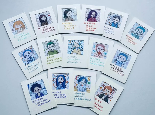 在第四十一个教师节到来之际,学校天堂校区举办“温情献礼师者”系列活动。艺术设计学院学子们以“创作+祝福”向学院教师致以最诚挚的节日问候,以独特方式表达对恩师的感激之情。