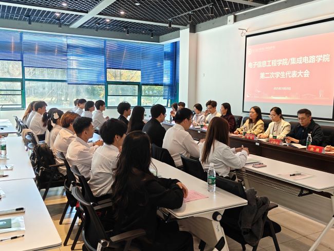 赵芳艳同学代表电子信息工程学院/集成电路学院学生会作了题为《承启新篇,奠基未来》的工作报告。报告全面总结回顾了学院第一次学代会以来学院学生会紧扣“服务同学成长、助力学院发展”核心任务,以“打基础、建制度、创品牌、强服务”为目标,所取得的优异成绩,进一步明确了未来一段时期学生会工作的整体思路与发展方向。