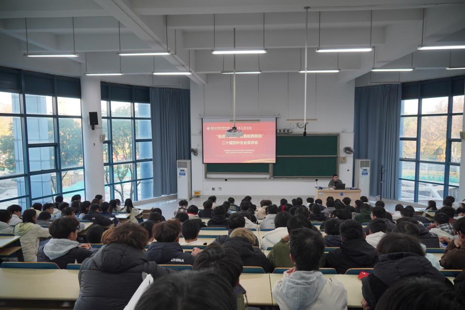 为深入学习贯彻党的二十届四中全会精神,引导广大青年学生深刻领会、准确把握全会核心要义与实践要求,11月19日,航空工程学院在教一304成功举办了党的二十届四中全会精神专题宣讲会。本次宣讲会由学院副院长张建鹏担任主讲,学院各年级学生代表、学生组织骨干等近300人参加了学习。
