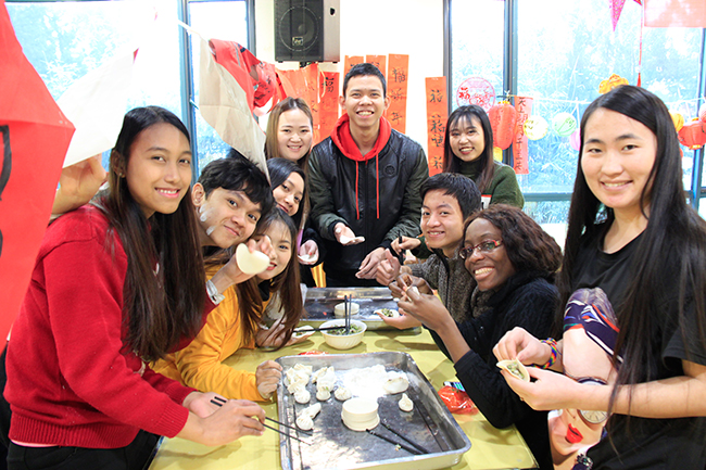 随后,留学生们一起学习包饺子。第一次在中国过春节的外国留学生们对包饺子表现出浓厚的兴趣,在老师的耐心指导下,留学生们跃跃欲试,开始他们“别具一格”的包饺子尝试,现场瞬间变成了饺子DIY大课堂。通过不断的尝试,一个个形态各异、妙趣横生的饺子呈现在大家面前。经过大家的共同努力,一锅锅热气腾腾的饺子出锅装盘,大家围坐在一起,津津有味地品尝着自己包的饺子,感受着浓浓的中国年味儿,喜悦之情溢于言表。