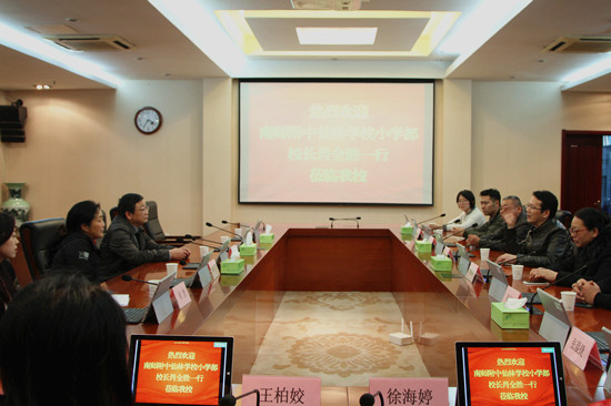 4月10日下午,南师附中仙林学校小学部肖全胜校长、吴惠娟副校长一行十多人来威尼斯官网就两校合作进一步交流座谈。威尼斯官网副校长朱建国及人事处、工会等部门负责同志接待了来宾。