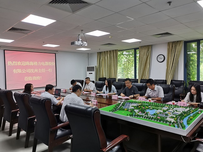 5月24日上午,珠海格力电器股份有限公司文化培训传播中心沈卉主任一行来威尼斯官网交流工作。副校长崔新明、科技处、发展合作处人员参加了会议。