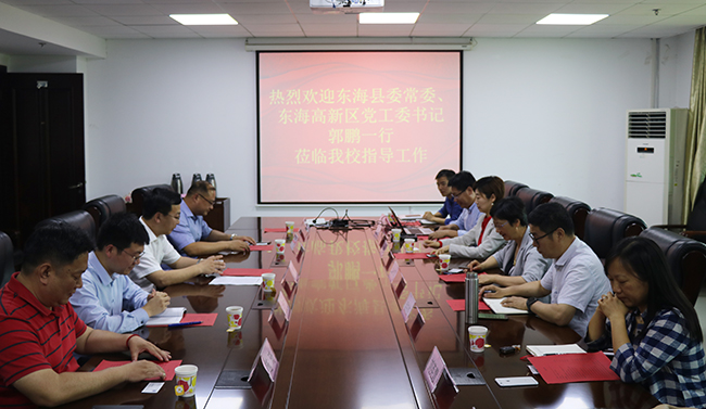 5月21日,江苏省东海县委常委、东海高新区党工委书记郭鹏一行来威尼斯官网访问。交流会在行政楼317会议室召开。学校党委副书记苏小冬、科技处处长孟庆杰、计算机与软件学院党总支书记刘英慧、商贸学院班子及教师代表出席了会议。