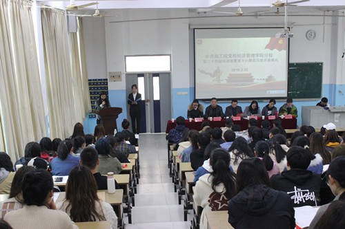 根据经济管理学院党总支总体部署,3月13日下午,中共南工院党校经济管理学院分校第34届培训班暨第16期青马班开班典礼在乐业楼阶梯教室J5101隆重举行。党总支书记陈林杰、教工支部书记、兼职组织员、学生支部书记、全体辅导员以及190名学员参加了本次开班典礼。
