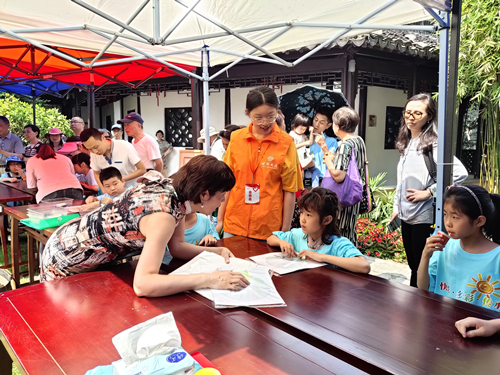 尽管活动当日烈日炎炎,志愿者们依旧热情不减,在每个角落里都有他们热心服务的身影。他们一方面协助主办方积极参与活动现场的组织协调和后勤保障中,另一方面为现场观众介绍活动流程并引导至具体的活动展位中。在整个志愿服务过程中,志愿者们秉持敬业乐群校训,主动放弃节假日休息,发扬吃苦耐劳的职业精神,用自己的实际行动实践非遗传承。活动现场,汗水浸透了每一位志愿者的衣衫,大家无怨无悔、热情高涨,展现了计算机与软件学院志愿服务团队热情高效的工作作风和特殊气候条件下的应变能力,同学们细致周到的志愿服务得到了南京市民俗博物馆以及广大市民的认可和表扬。