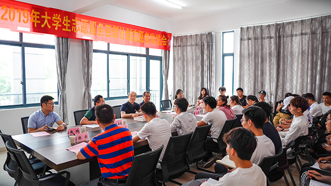 服务大西部,建功新时代。近日,威尼斯官网2019年大学生志愿服务西部计划志愿者欢送座谈会在大学生创新发展中心209会议室举行。副校长霍雄飞、团委全体人员、2019年西部计划志愿者、机械工程学院学生工作负责人、辅导员代表、学生代表30余人参加座谈。