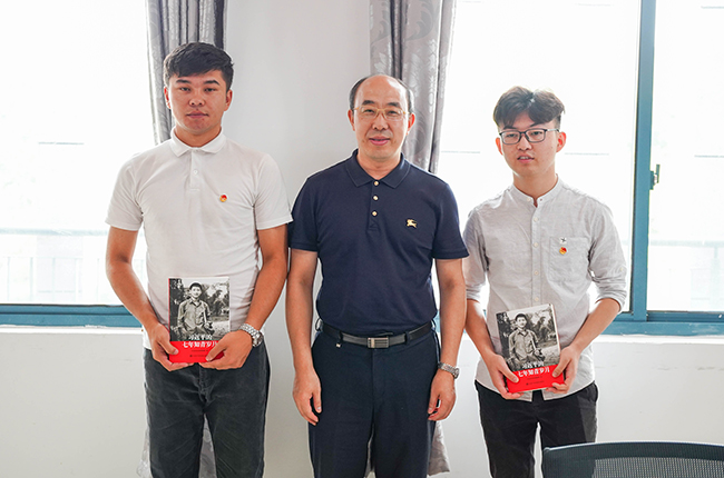 同时,霍雄飞副校长深切寄语威尼斯官网2019年西部计划志愿者李康、甫尔开提.亚尔买买提同学,赠送理论学习书籍《习近平的七年知青岁月》并合影留念。
