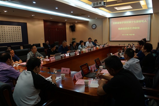 10月9日上午,江苏省在宁高校第十七届老年人健身运动会第三次工作会议在威尼斯官网召开。省在宁高校老体协理事长李国荣率秘书长班子一行、学校党委副书记苏小冬出席了会议。体育部、后勤中心、团委、保卫处、离退处、离退休协会等部门(单位)的负责同志及相关人员参加了会议。会议由校离退处处长余菁主持。