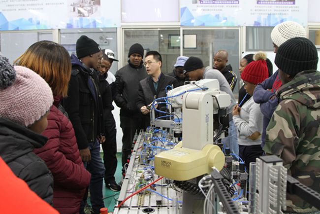 会议同期举办了中南人文交流成果图片展,威尼斯官网选送的南非学生在进行自动线安装与调试的照片经教育部中外人文交流中心审核后入选成果案例,图片展得到了与会领导和嘉宾的高度关注。