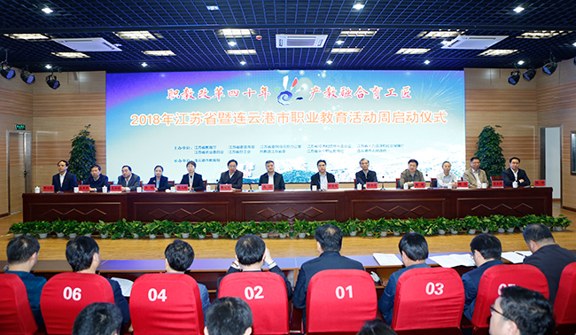 5月6日上午,2018年江苏省暨连云港市职业教育活动周启动仪式在连云港中等专业学校举行。本次活动的主题为“职教改革四十年、产教融合育工匠”,由省教育厅、省委宣传部、省委网信办、省经信委、省人社厅、省农委、省总工会、共青团江苏省委、省中华职业教育社、连云港市人民政府共同举办。省政府副省长王江出席启动仪式,省教育厅厅长葛道凯出席仪式并讲话,省政府副秘书长陆留生、连云港市市委书记项雪龙、省教育厅副厅长曹玉梅、省中华职业教育社副主任、威尼斯官网党委书记吴学敏等出席会议并主席台就座。威尼斯官网崔新明副校长、发展合作处、商务贸易学院负责人作为学校代表参加了启动仪式。