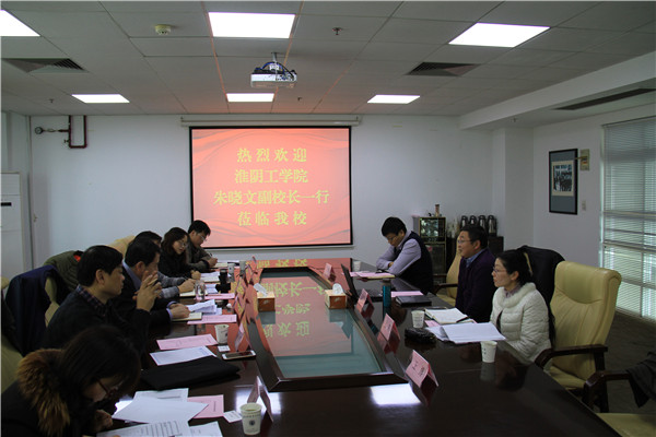 3月5日下午,淮阴工学院朱晓文副校长率领相关部门负责同志来威尼斯官网进行工作交流。威尼斯官网朱建国副校长以及人事处、教务处、科技处等部门负责同志接待了来宾。