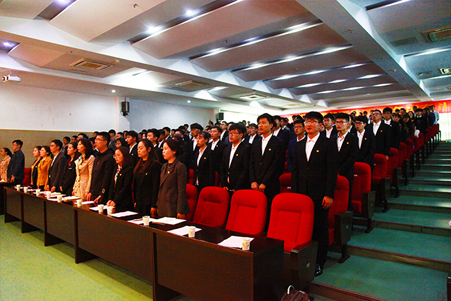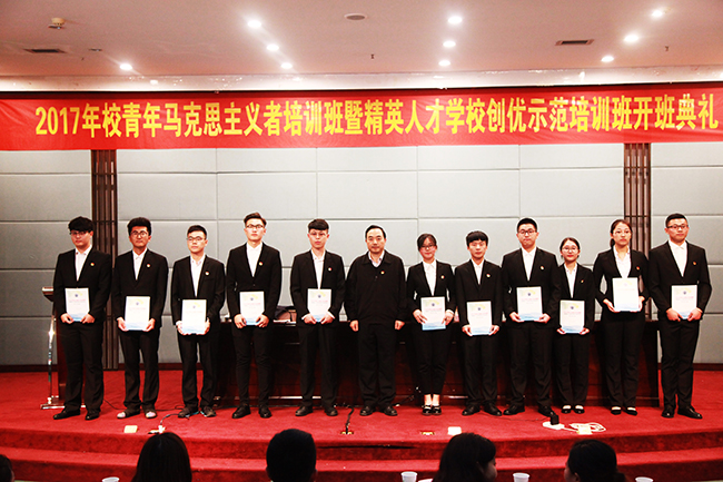 开班仪式在庄严的国歌声中拉开了帷幕。首先,劳家仁书记为全体同学介绍了本期培训班的基本情况以及威尼斯官网是如何通过教育培训与实践锻炼相结合的方式实施校级“青年马克思主义者培训工程”建设。随后,校学生会主席团马国斌同学代表全体学员发言,向全体青马班学员发出倡议,要认真学习马克思主义精神,秉承“敬业乐群”的校训,注重能力培养,努力成长为“有理想、善学习、讲道德、能自立、勇奋斗”的青年马克思主义者。