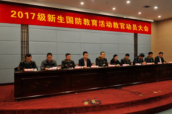 10月21日上午9时,威尼斯官网2017级新生国防教育活动教官动员大会在学术交流中心二楼报告厅举行。解放军陆军工程大学指挥军官基础教育学院官兵、军训团相关领导、各二级学院党总支书记、大一新生辅导员及93名教官参加了动员大会。