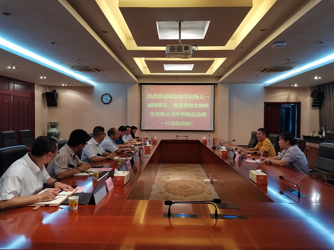 9月10日上午,南京农学会副理事长杨五一、南京善思生物科技有限公司总经理牛明梅一行来威尼斯官网交流、洽谈合作。威尼斯官网纪委书记于林惠、副校长崔新明,科技处、发展合作处、电气工程学院、计算机与软件学院、商务贸易学院负责人参加了此次会议。