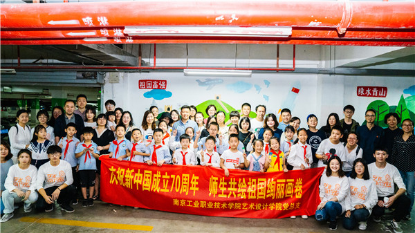 为充分发挥全体党员在“不忘初心、牢记使命”主题教育中的先锋模范作用,积极响应学校“一院一品”特色党建品牌建设,进一步提升党员服务社区的能力,9月28日,艺术设计学院党总支、团总支联合仙林湖党总支、西岗街道团工委、南京市金陵小学、保利物业江苏公司,共同开展了“庆祝新中国成立70周年,师生共绘祖国绚丽画卷”主题墙绘活动。艺术设计学院党总支和团总支共21位老师同学参加了本次活动。