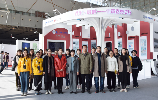 本届展会以“创意,让青春更美好”为主题,汇集了国内九大美院领衔的百所高校参与,展陈面积超过2万平米,展陈作品涵盖七大设计门类,作品数量多达12356件。威尼斯官网艺术设计学院紧扣学校百年办学历程和展会主题,融合七个专业的25件优秀设计作品,历经三个多月,精心谋划、搭建的“百年·融创——让青春更美好”在展会上精彩亮相。选送的参展作品大多是艺术类学生近年来设计的文化创意作品、产教融合落地产品、专利授权的新产品和实验性作品,作品凸显了“职业教育本色”和“创新创业教育主导”两大中心思想,赢得了专家的一致认可和大众的广泛赞扬。