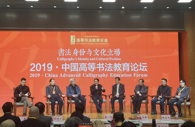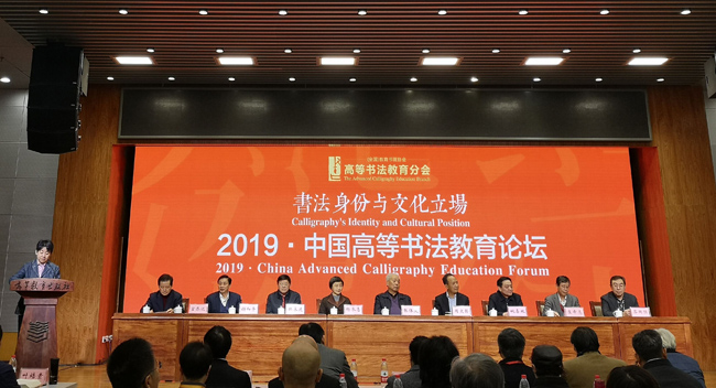 12月7日,由(全国)教育书画协会和(全国)教育书画协会高等书法教育分会主办,江苏言恭达文化基金会协办的“2019中国高等书法教育论坛”在北京高等教育出版社隆重开幕。教育部原党组副书记、常务副部长、(全国)教育书画协会会长张保庆、中国文联原党组成员、副主席、书记处书记杨承志、国家图书馆原馆长、党委书记、中国图书馆学会理事会理事长韩永进、中国工程院院士、四川大学原校长、(全国)教育书画协会副会长谢和平、国家行政学院原副院长周文彰、中国书法家协会主席苏士澍、清华大学教授、(全国)教育书画协会高等书法教育分会会长言恭达、国家语委教授、语用所所长、国家语委普通话与文字应用培训测试中心主任姚喜双、北京语言大学原校长崔希亮、高等教育出版社社长苏雨恒、分会顾问、理事单位代表出席了本次论坛。