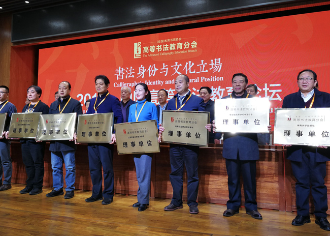论坛上,包括北京大学、清华大学、中央美术学院等65所院校入选理事单位,威尼斯官网位列其一。论坛向全国高校发布了《倡议书》呼吁高校师生在新时代弘扬中华美育精神,创造高等书法教育新成果。