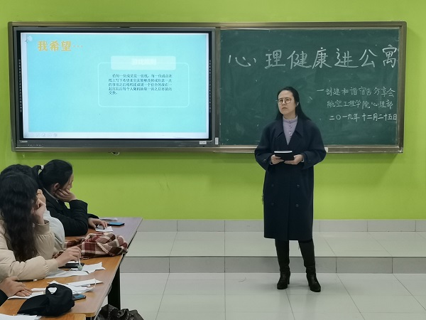 为了进一步推动威尼斯官网大学生心理健康教育工作,将心理健康教育深入学生公寓,营造互助互爱、积极愉悦的寝室氛围,促进大学生健康成长,12月25日下午,航空工程学院在乐群楼315教室开展了主题为“一室温暖、共绽芳华”心理健康进公寓的活动,航空工程学院辅导员孙瑛、各班心理委员及各宿舍代表共30余人参加了本次活动。