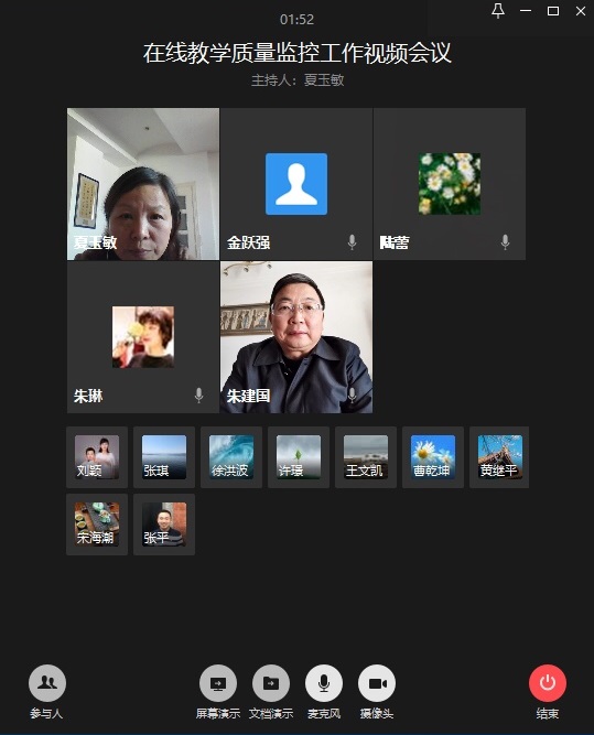 学校党委委员、副校长、质量监控工作组组长朱建国安排时间跟听了部分教师的在线教学,结合会上与会者的发言,朱建国充分肯定各教学单位在时间紧、要求高、难度大的情况下,积极组织师生分时分专业分课程参与线上教学,保证了线上教学有条不紊地进行及学生高出勤率所作的努力。同时朱建国对后续线上教学督导工作提出了几点要求。一是希望各教学单位继续高度重视线上教学,规范课堂标准;二是各教学单位将工作落实落细,督导工作要做到全覆盖,全面真实了解师生线上教学情况,关注与帮助到困难师生;三是各教学单位要做好线上线下课程的衔接预案,为正常开学做好准备;四是质控处要进一步完善质控平台的建设,保证师生正常使用平台。最后,朱建国希望各教学单位以线上教学为契机,总结线上教学经验,探讨线上教学新模式,打造线上精品课程。