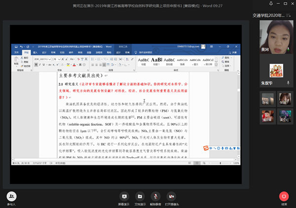 会议主题二是2020年省高校面上项目申报讨论模块。因今年疫情影响,2020年度省高校面上项目申报时间紧张,撰写申报书仅有短短一周时间。朱双华为鼓励学院科研人员申报,邀请2019年立项省高校面上项目的黄河老师作申报经验分享。黄河着重强调项目研究意义、发展趋势、创新点、参考文献等方面在撰写过程中需要注意的技巧及细节,她建议申报书采用精炼的方式阐述项目涉及领域的现状及未来发展情况的同时,多多加入自我对于该领域的历史、进展、核心问题的思考,从而增加申报书申报成功的概率。各位申报老师看完分享后纷纷表示深受启发,对自己近期撰写非常有帮助。朱双华在会议上提出要创造性地开展科研组织、管理与服务工作;要扎实推进重点科技任务的落实落地;要超前做好近两年的科研工作准备与谋划。他强调,要根据疫情期间学校关于基金项目工作整体安排,按照基金工作时间节点层层推进抓落实,高质量完成各类省部级基金项目申报工作;同时也要按照学院2020年科研工作的总体要求,凝练科研创新团队,优化科研平台布局,产出一批原创性标志性科研成果,进一步提高学院科研核心竞争力。