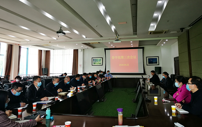 4月22日,2020年第三次线上教学质量监控工作会议按期在行政楼辅楼二楼召开。线上教学领导小组下设质量监控工作组所有成员、教务处和质控处处室成员共24人参加会议,质控处处长周玉泉主持本次会议。