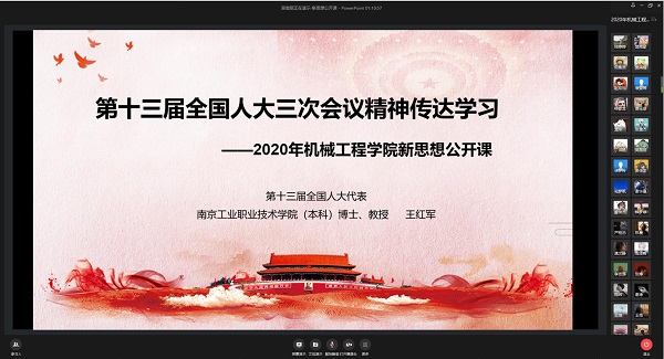 为了传达学习第十三届全国人大三次会议的精神,深入学习贯彻习近平新时代中国特色社会主义思想,高举中国特色社会主义伟大旗帜,6月22日,机械工程学院邀请了第十三届全国人大代表王红军教授开展线上新思想公开课。
