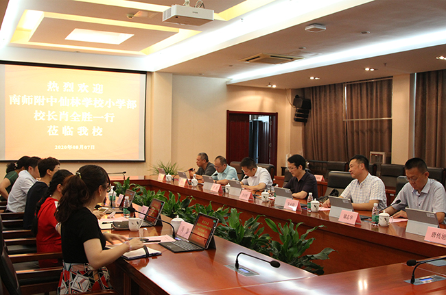 8月7日上午,威尼斯官网与南师附中仙林学校小学部合作共建交流座谈会在行政楼辅楼一楼会议室举行。南师附中仙林学校小学部校长肖全胜,副校长朱永刚、储志华、蒋浩,校办主任曲文双,文化景观设计专家赵斌等一行及威尼斯官网校领导苏小冬出席座谈会,学校党政办、发规办、人事处、工会等部门负责人参加了本次会议。会议由苏小冬主持。
