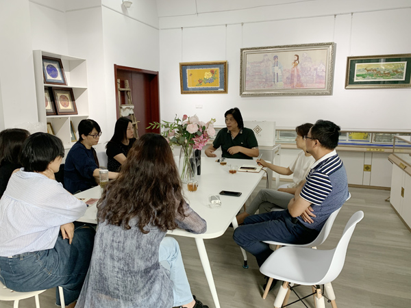 开学第一周,艺术设计学院专门召集教学部主任召开科研工作会议,要求每个教学部要成立以博士与高级职称教师领衔的科研创新团队。9月11日下午室内设计专业的"非遗文创科研创新团队"与威尼斯官网“金文云锦大师工作室”进行交流座谈,主要围绕人才培养,课程规划,项目合作与大赛指导进行了深度探讨,并初步确定了近期要开展的相关合作事宜,双方一致同意将围绕"南京云锦"开展系列专场讲座、师生实操能力培训、项目合作等各项对接工作。