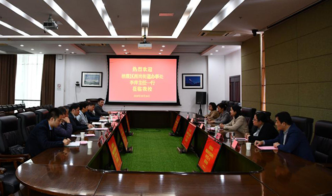 10月26日,栖霞区西岗街道人大工委主任李萍和街道领导石晓红、徐玉静、仇晓源、何道锦等一行5人来校调研。威尼斯官网党委副书记苏小冬和党政办公室、发展规划办公室、党委组织部、党委统战部、工会、离退休工作处、机械工程学院相关同志接待了来宾。