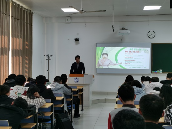 11月4日下午,航空工程学院在乐群楼201举办“校园结核病 咳不容缓”健康知识讲座。本次讲座特别邀请了江苏省疾控中心慢传所副主任医师陈诚博士和威尼斯官网公共卫生科科长王海茹为大家讲解结核病相关知识以及预防方法。航空工程学院学生代表共100人参加了讲座。