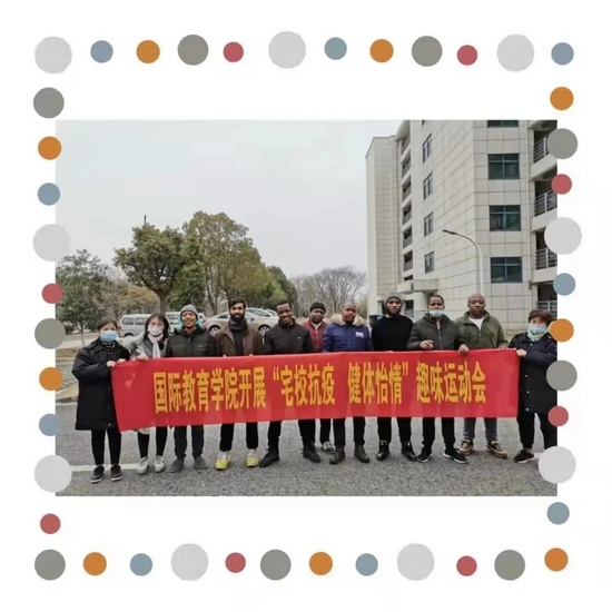为了进一步丰富在校留学生寒假生活,缓解学生的思乡情绪,促进师生情谊,国际教育学院在校园组织“宅校抗疫,健体怡情”心理主题教育暨趣味健身活动。通过活动,使留学生们增进了友谊,增强了体魄,磨练了意志。充分展现了留学生们良好的精神风貌和高昂的运动热情,体现了国际教育学院学子的蓬勃朝气与活力,丰富了在校留学生疫情期间的校园文化生活。