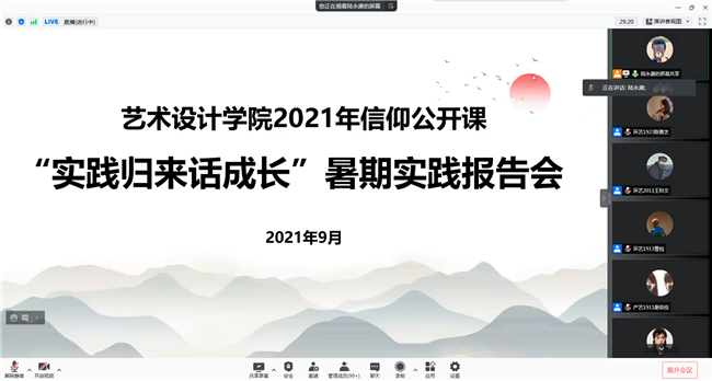 [艺术学院]艺术设计学院举办“实践归来话成长”线上主题信仰公开课
