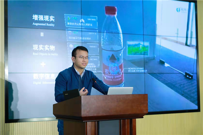 钟漫江介绍了栖霞区推动区域文化与科技产业发展的主要举措和成果,希望艺术设计学院的师生能为栖霞区的文化产业发展助力。张帅向大家介绍了视网么公司的发展历程。视网么公司致力于增强现实技术的产品研发与市场普及。借助视网么APP可以在传统纸质媒体上呈现出精彩的立体和动态效果。他们的这一新应用方式已经被多家媒体应用于新媒体新闻与广告的传播。目前公司正运用增强现实技术与“汉字叔叔”合作开发《字源卡》项目,致力于汉字文化的推广。