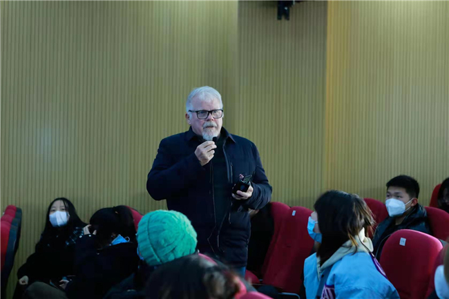 “汉字叔叔”理查德·西尔斯向师生们分享了他爱上汉字、建立汉字数据库、寻找汉字背后故事的独特经历以及他的研究成果。理查德·西尔斯虽然是一名美国人,但他却痴迷于中国汉字研究,他建立的“汉字字源”网站收集编列了几万个古代中文字形。在这个网站上,我们可以查询到很多汉字从甲骨文、金文、小篆等历经千年的演变过程。因此,他被亲切地称为“汉字叔叔”。艺术设计学院的师生们都被“汉字叔叔”的经历吸引,在他的故事中感受着中华文化的底蕴与内涵。