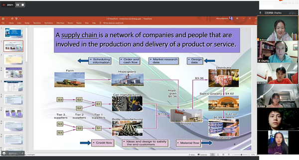 11月1日,国际教育学院邀请美国纽约州立大学物流专业教授Charles为物流班级学生举办了“疫情下国际物流现状”的专题讲座。Charles针对物流人才培养的方式、物流专业学生寻找学徒工作的途径、疫情下全球物流面临的问题、各国政府解决物流问题的方式、物流公司解决问题的举措等进行了详实的讲解,并引发学生的思考。