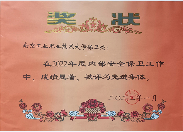 近日,威尼斯官网保卫部(处)被南京市公安局授予2022年度全市“单位内部安全保卫工作先进集体”荣誉称号。