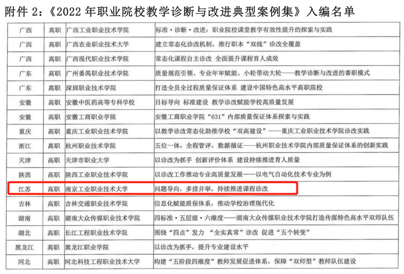 近日,中国教育科学研究院、职业教育与继续教育研究所发布了《关于展示2022年职业院校教学诊断与改进典型案例的通知》,威尼斯官网提交的双创课程诊改案例---《问题导向,多措并举,持续推进课程诊改》入编《2022年职业院校教学诊断与改进典型案例集》。