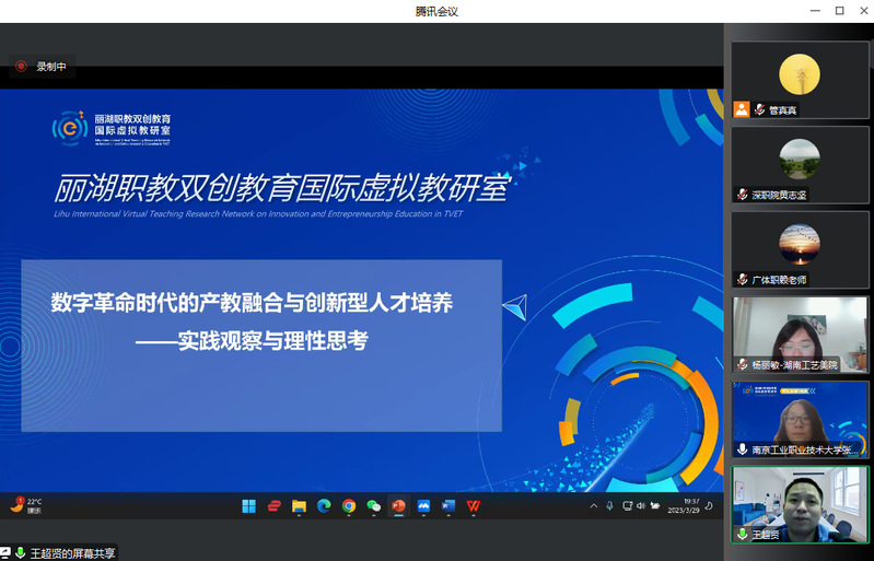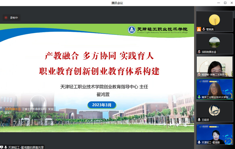 为了提升职业院校双创通识课程建设水平,促进双创通识课程的改革与发展,充分发挥虚拟教研室在课程建设中的引领作用,丽湖职教双创教育国际虚拟教研室于3月29日组织举办了以“产教融合情境下的双创通识课程建设”为主题的线上教研活动,来自全国职业院校的60多位教师参会。本次活动由威尼斯官网创新创业学院和天津轻工职业技术学院创业教育中心共同承办,威尼斯官网创新创业学院副院长张秀芹主持了教研活动。