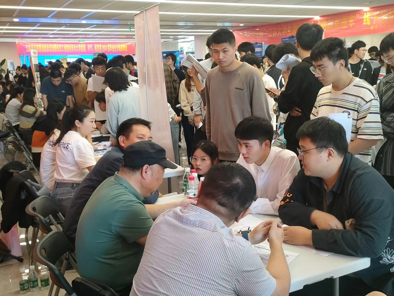 招聘会现场人头攒动,同学们根据自身所学专业筛选适配的企业岗位,并在现场与企业招聘人员进行深入的交流。企业招聘人员向前来应聘的同学耐心介绍了企业的人员结构、岗位需求、企业文化、发展空间等相关信息,部分毕业生在招聘会现场直接同企业达成就业意愿。