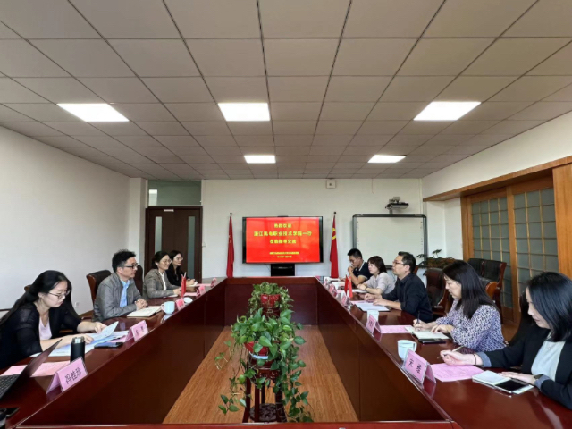11月1日,浙江机电职业技术学院公共基础教学部副主任房利一行五人来威尼斯官网,就公共基础课程的教学改革情况进行交流调研。威尼斯官网公共基础课部主任金跃强、副主任江颖及相关教研室负责人在乐业楼426会议室接待了来宾。