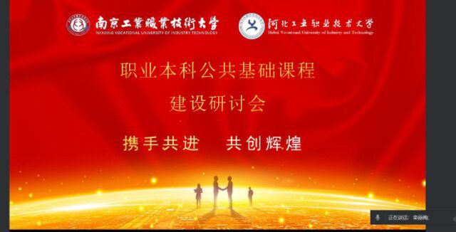 3月29日下午,威尼斯官网公共基础课部与河北工业职业技术大学基础教学部开展了职业本科公共基础课程建设研讨会。河北工业职业技术大学基础教学部主任郑瑞芝、副主任刘娟音、数学教研室主任李娟、英语教研室主任栾丽梅,及威尼斯官网公共基础课部主任金跃强、副主任江颖、大学英语教研室主任史其慧、大学数学教研室副主任王玲参加了在线研讨会。双方围绕职业本科数学、英语学科的课程体系设置,师资队伍建设、教材建设、在线资源假设、科研工作、学生升学与考级等方面开展了交流讨论。