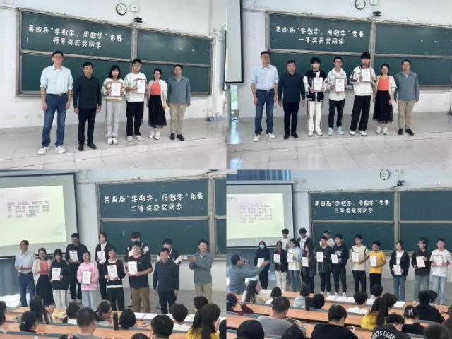 为激发学生学习数学的兴趣,发现和培养数学创新人才,为学生搭建展示数学思维能力和学习成果的平台,在校教务处和各二级学院的大力支持下,公共基础课部联合大学生数学建模协会于2024年6月举办了南工第四届“学数学、用数学”竞赛,并于10月9日下午举办了竞赛颁奖仪式。数学建模教练组负责人陈越奋教授、林小围副教授、谭湘花副教授、方炜博士参加仪式并为获奖学生颁奖。